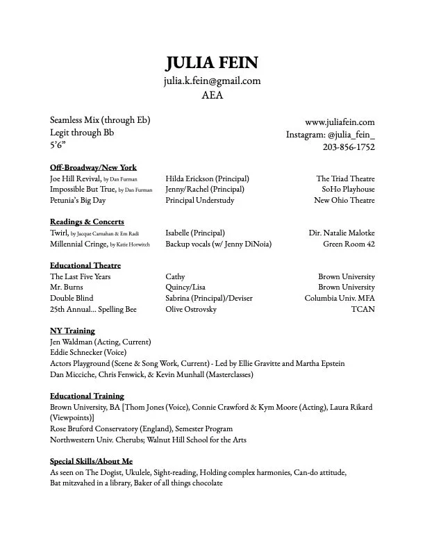 “Julia is a well-crafted risk taker. She is able to utilize her skills while exploring a variety of acting choices from subtle to bold. Her vocal strengths are paired well with her strong instincts as a performer.”
