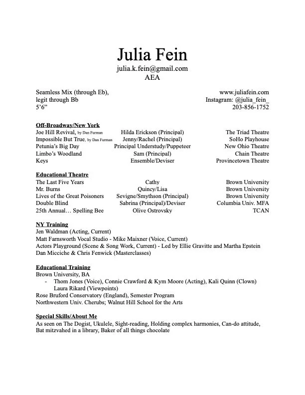 “I worked with Julia in two back to back productions of Brooklyn Tavern Theater in 2021-22. Our shows often involve direct interaction with the audience which did not faze her. Julia is professional and shows up to rehearsals with her music learned and her lines memorized. She is a beautiful singer and actor and her work was a real asset to both shows.”